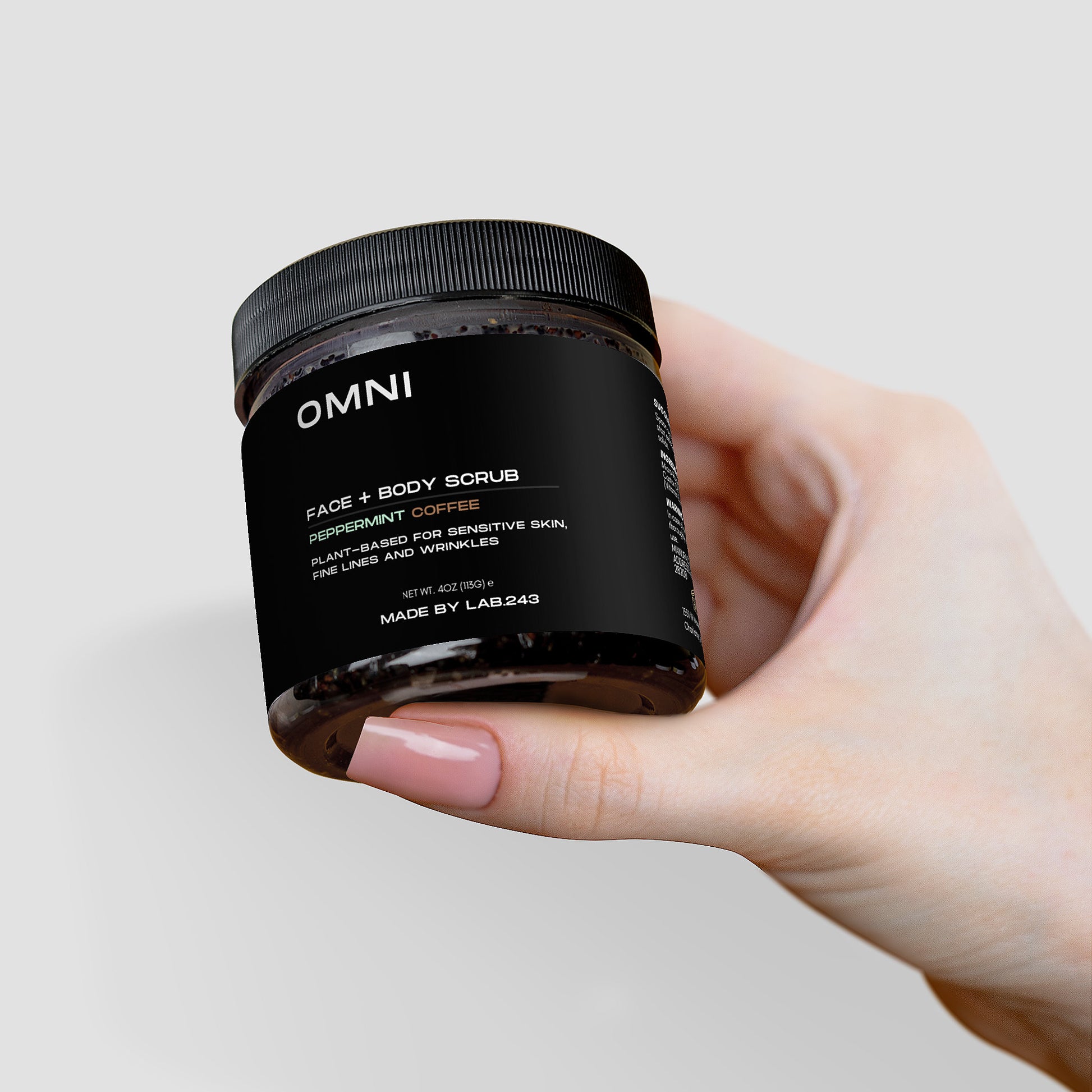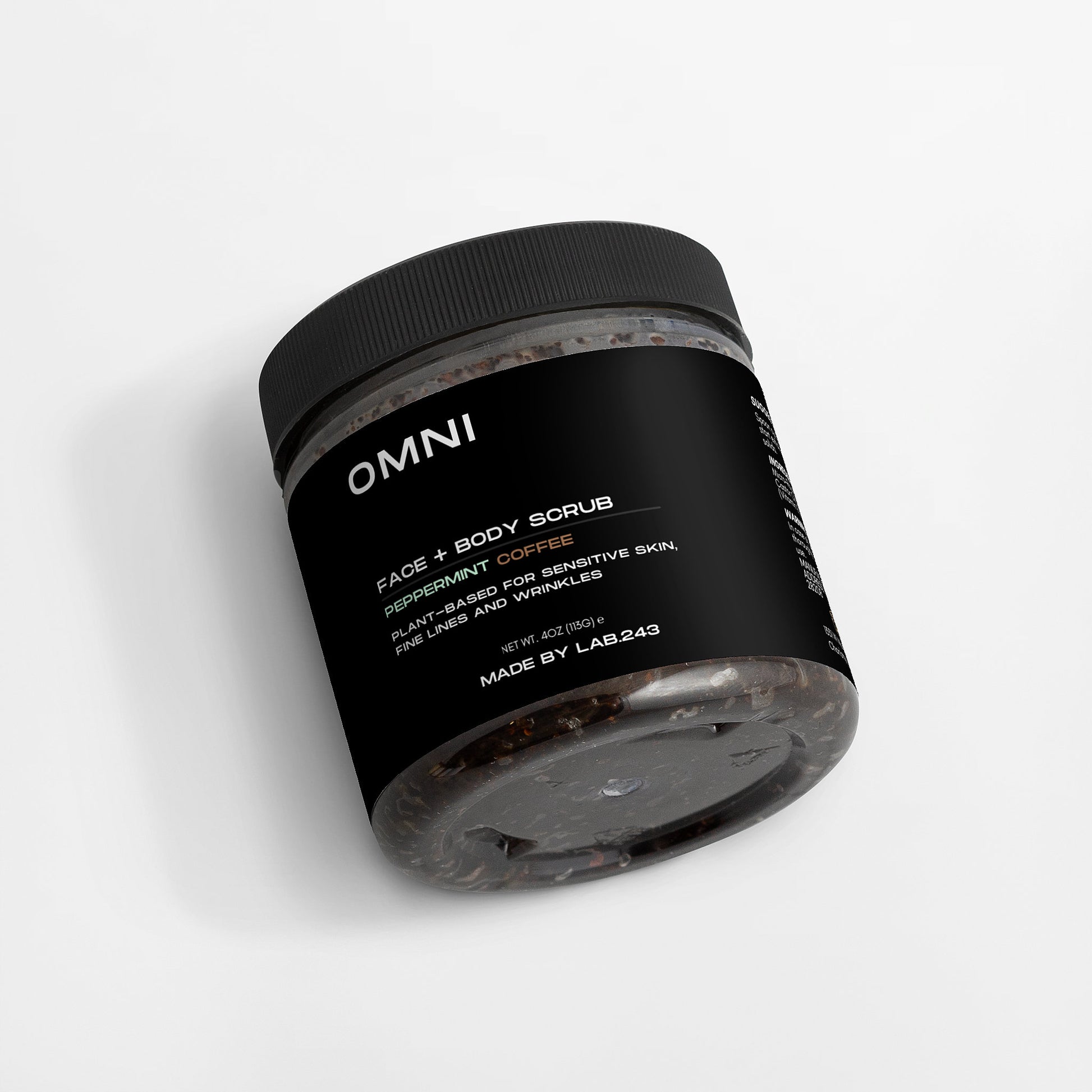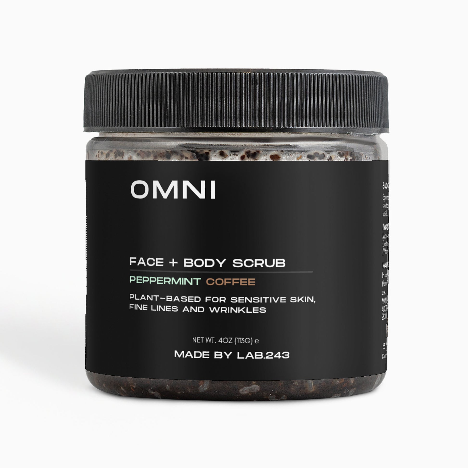 Ingredients: Micro-Roasted Coffee*+, Brown Sugar*+, Coconut Oil*+, Castor Oil*+, Sea Salt, Peppermint Essential Oil*, Tocopherol (Vitamin E)+ // *Organic +Food-Grade