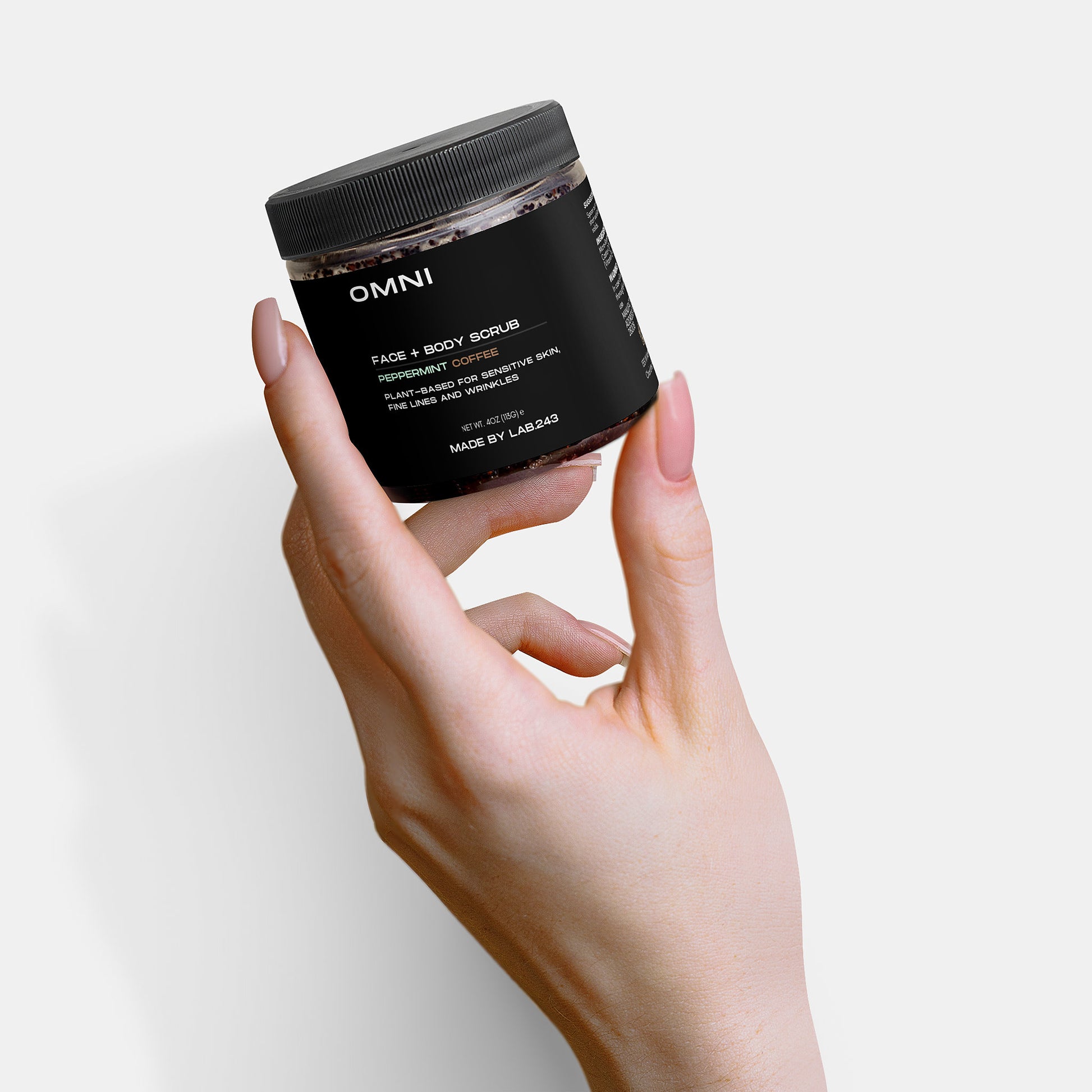 - Enjoy the invigorating scent of Peppermint and Dark Roast coffee as you indulge in your skincare routine.
